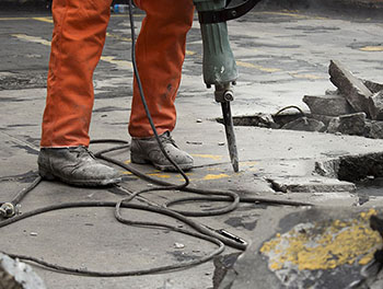 Remove old, damaged, or settled concrete. The concrete pieces are hauled away and disposed appropriately.